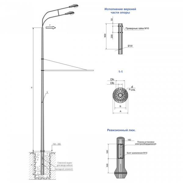 Опора ТФГ-1500-9,0-02-ц — опора трубчатая фланцевая применяется для установки оборудования уличного освещения и одновременной прокладки линий электропередач городского наземного электротранспорта, размещения рекламных и информационных щитов.