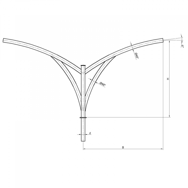 Двухрожковые кронштейны К79-1,0-2,0-1-1 предназначены для крепления светильника на трубчатой опоре освещения.