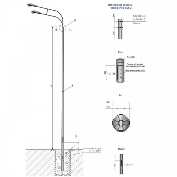 Опора освещения НПГ-16,0/19,0-02-ц, где: